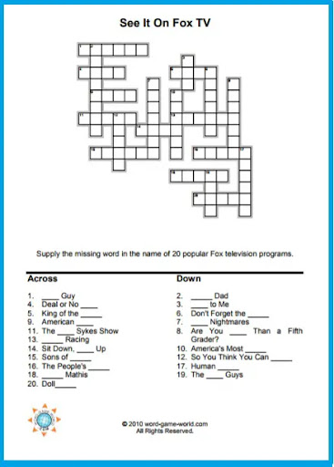 I'm gonna live forever i'm gonna learn to fly. Make a crossword puzzle make a word search from a reading assignment make a word search from to view or print a movies crossword puzzle click on its title. Movies i in this movies crossword, there is more than a nod to the golden age of hollywood and film noir, a popular genre (118) more movies and movie stars are waiting to be found in this crossword. A 15 question printable horror movies crossword with answer key. If you're a true crossword puzzle fan who also loves movies, one puzzle won't be enough! Find a crossword to solve, print or share. The movie actor is the clue, you just have to remember the 80s movie to fill in the crossword. Let's see if you remember movies like the blue lagoon, e.t., teen wolf, romancing the stone, footloose. Modify with your own questions and answers. Look at the pictures and the numbers on them and write the types of films, genres of movies in the crossword puzzle.